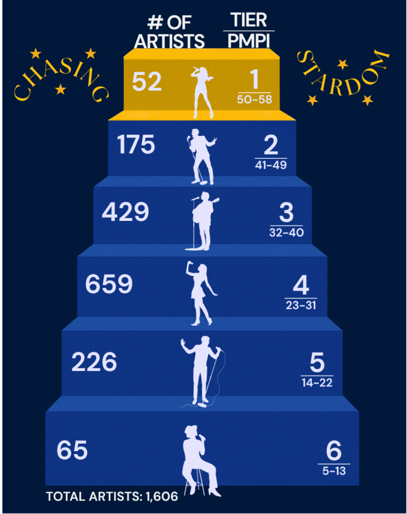 Prioritizing Touring Opportunities: Our tier ranking system allows us to efficiently identify and prioritize top-performing independent artists in the database, ensuring the most promising talent is selected for support and touring.